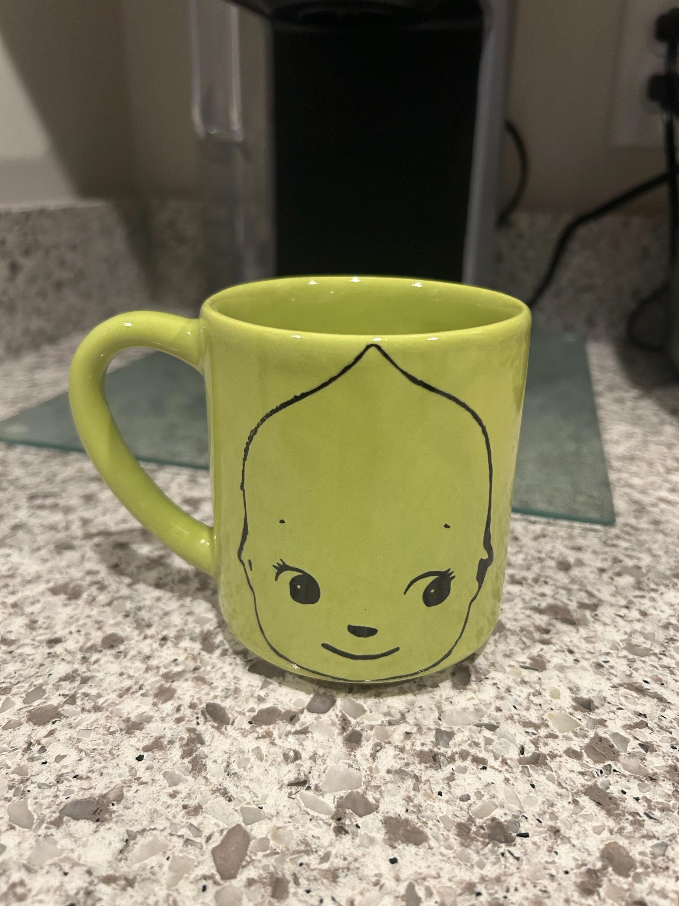 I’m so glad I ordered this mug for myself. It is so adorable and brings a smile to my face every time I see it! It’s made very well, the color I chose is perfect (tinda, I think), and it seems sturdy. I love that it’s dishwasher and microwave safe, too. The seller was very kind and helpful and my mug arrived on time. I will definitely order from them again. Highly recommend this shop!