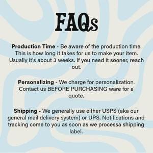 Contact us prior to purchasing an item that you'd like personalized, or made custom by adding extra things to it. Message to Seller is not the place for requests like that because we may need to cancel the sale for a request made we cannot fulfill.